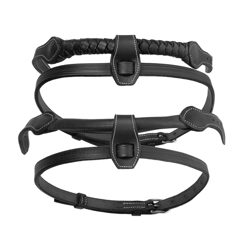 Le + : Les cuirs doublés veau afin d’avoir uniquement un cuir souple en contact avec le cheval.